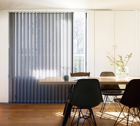 縦型ブラインドはお部屋をモダンに彩り、広く見せる効果や調光のしやすさが特徴です。縦長のデザインにより天井を高く見せ、空間に開放感を与えることで、快適な住空間を実現できます。