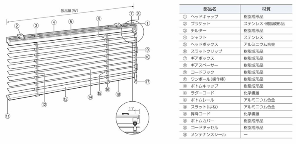 ブラインドには聞き慣れない部品(パーツ)が多数あり、説明書を読むときにどれがどの部品か悩んでしまうことも少なくありません。
