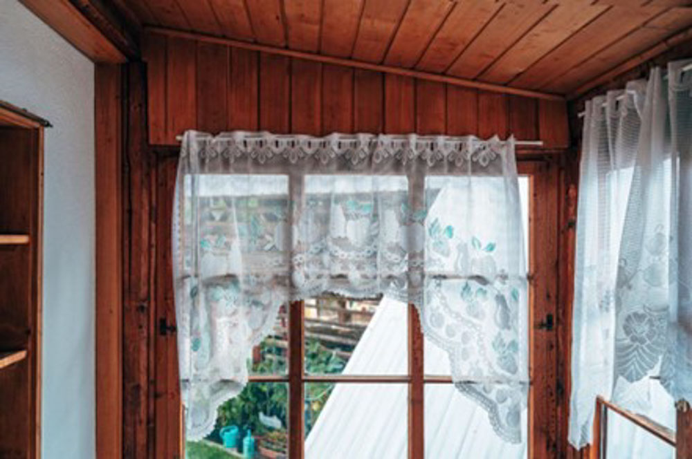 レースカーテンを小窓に設置すると、光を柔らかく取り込みつつ、外からの視線をやさしく遮る窓辺になります。カフェカーテンのように下部だけを覆えば、圧迫感を与えずに明るさを保つことも可能です。