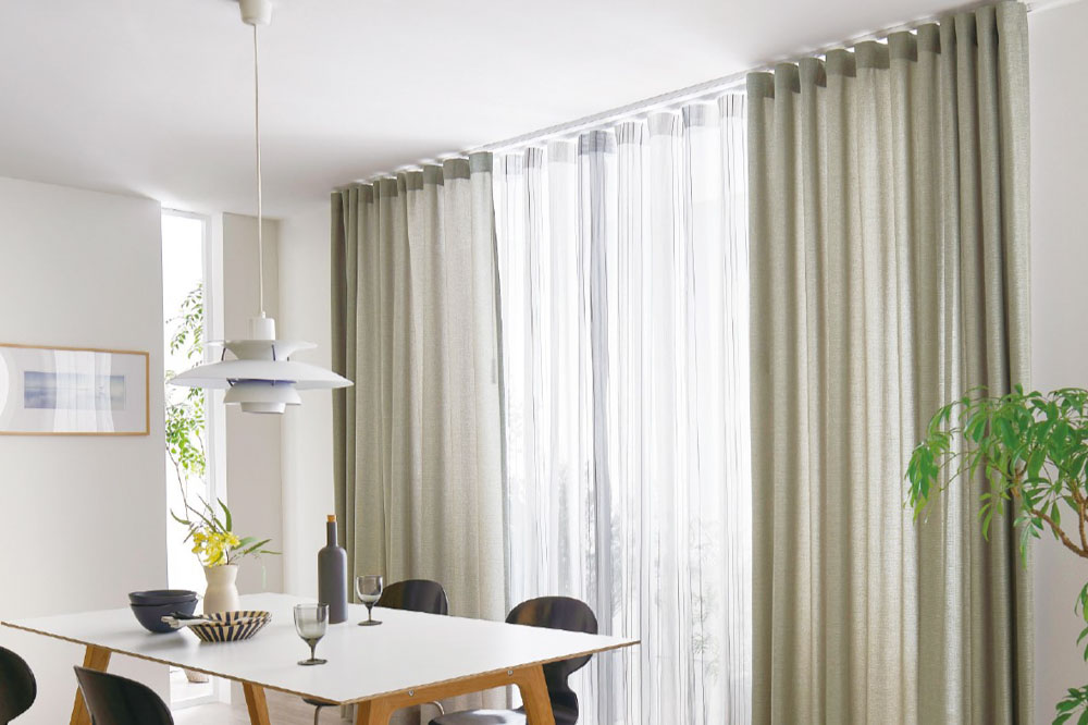 トーソーでは、遮熱・遮光、防炎・抗菌といった機能を備える窓まわりアイテムを豊富に揃えています。理想とするリビングのレイアウトに合わせ、長く使える高品質な製品や豊富なサイズと色柄の中から、空間にぴったりのアイテムを見つけてみてください。