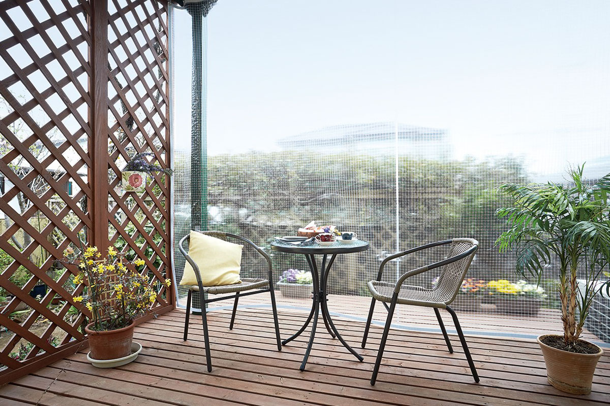 住宅には、ウッドデッキやガーデンスペースに設置する方法があります。透明なビニールカーテンなら庭の景観を楽しみながら風や冷気を防げ、冬場でもくつろぎの空間として活用できます。