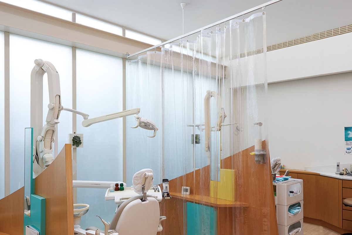 病院や介護施設では、空調管理だけでなく感染症対策としてもビニールカーテンが活用されています。例えば、待合室や廊下との仕切りに使えば、冷気の侵入を防ぎながら視覚的なプライバシーも確保できます。