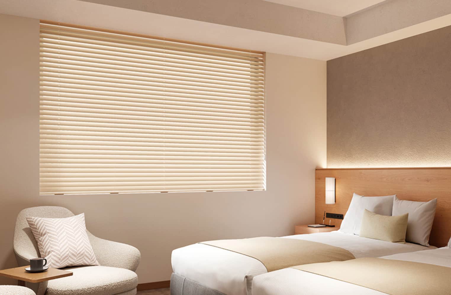 天然木でつくられたウッドブラインドは、ナチュラルからモダン、北欧、ホテルライクといったさまざまなインテリアスタイルと高相性を発揮するブラインドです。