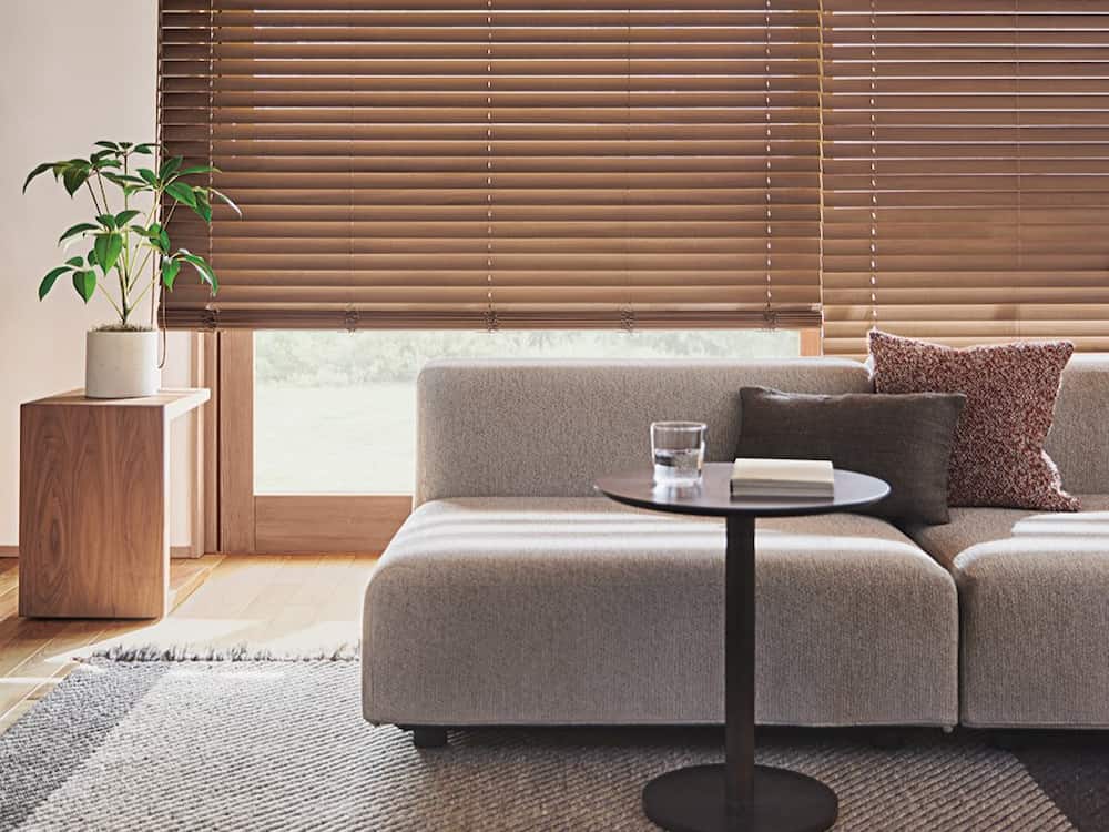 ウッドブラインドは、天然木や樹脂製の木目調スラットを使ったブラインドで、温かみのある雰囲気が魅力です。木はアルミよりも熱伝導率が低いため、スラットそのものが冷えにくいというメリットがあります。