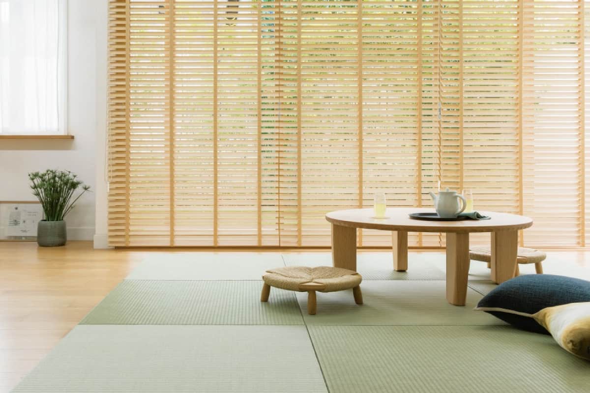 厚みのある木材を使用しているため、スラットを全閉にしたときの光漏れを抑えやすい構造を持っています。さらに、日中の強い日差しを遮りつつ、室内のプライバシーを守る役割も果たします。