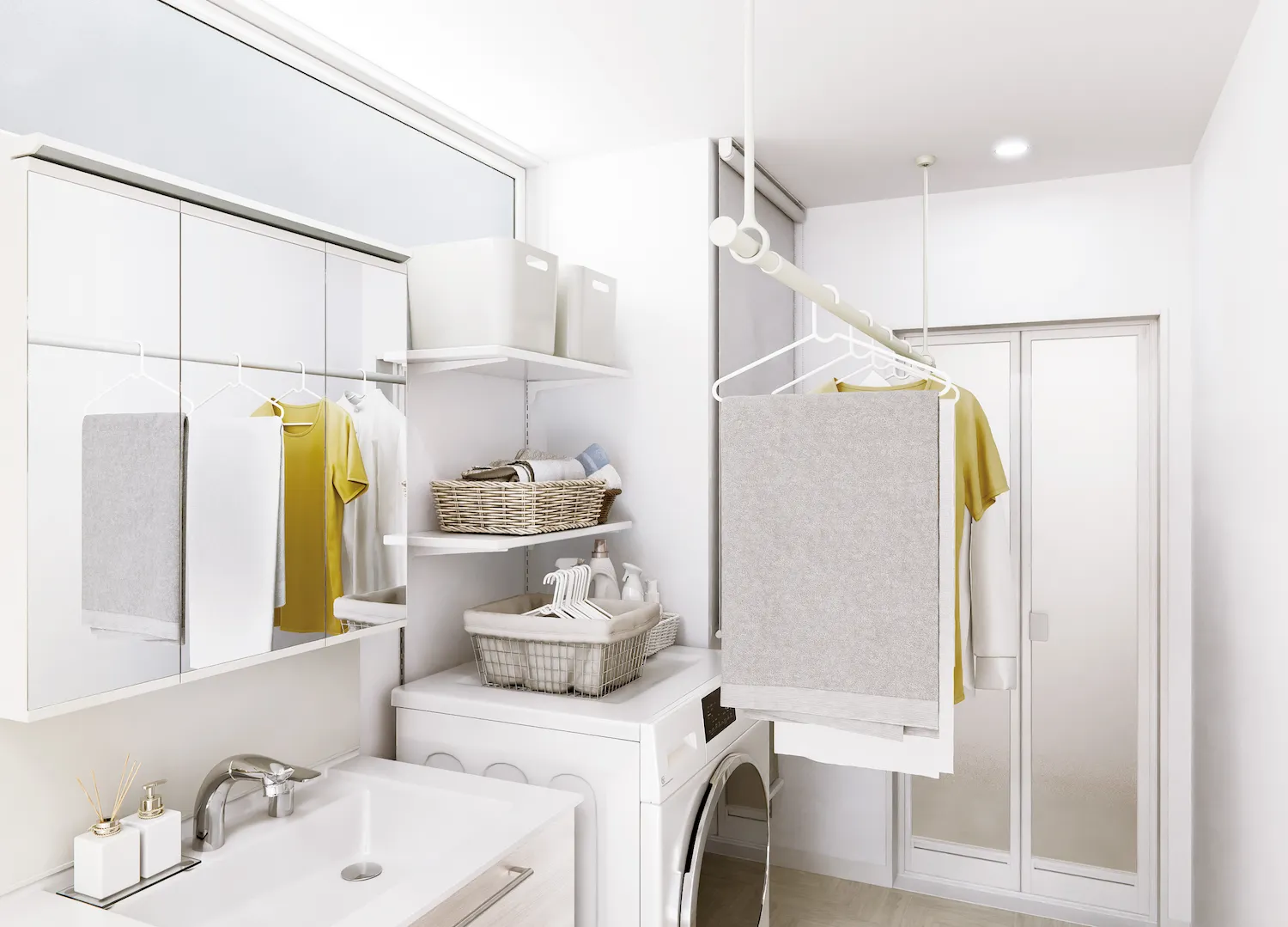 一方で、使わないときは取り外して空間をフラットに保ちたい方には「ランドリーバー LB-1」が適しています。