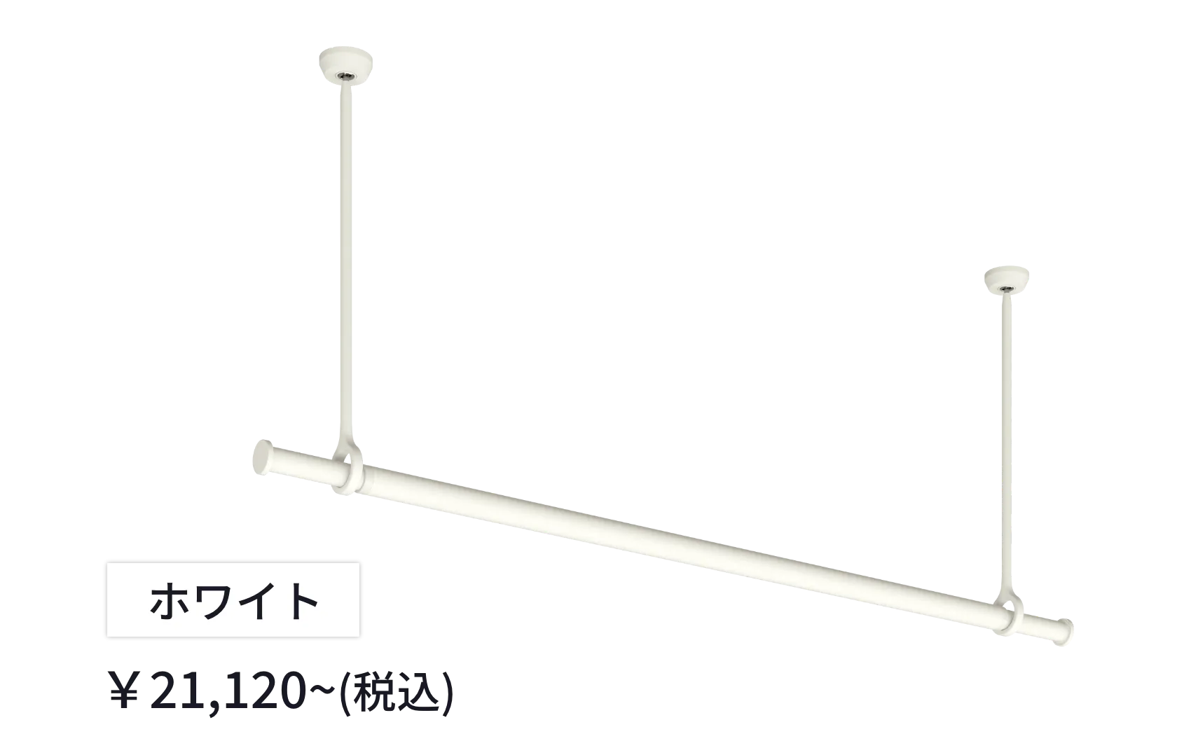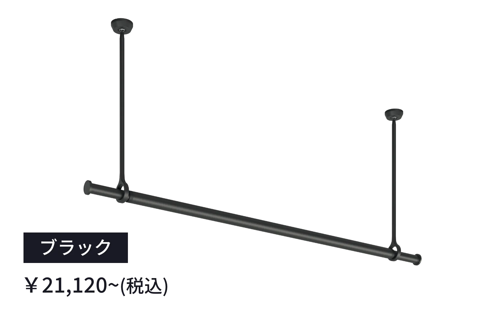 ブラケット、吊りポール、本体バーまですべてを同色・同質感で仕上げることで、