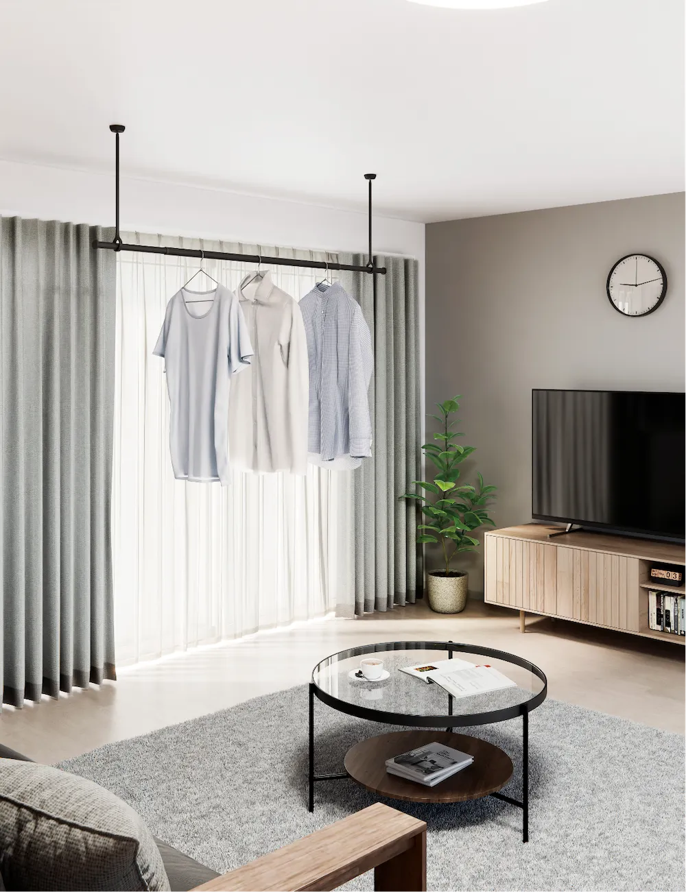 天井の高さや、洗濯物を掛けたときに使いやすい位置に応じて、適切な取り付け高さをお選びください。