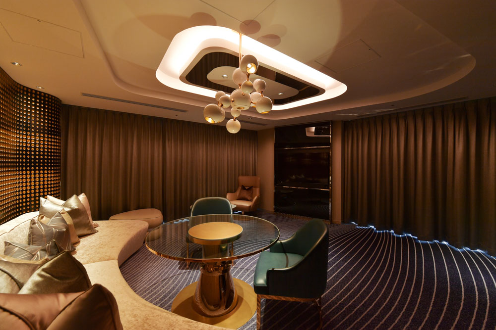 会員制リゾートホテルのエントランスを、非常に操作音の静かな電動ローマンシェード、リベルタ65-E静音で収めました。モーター音が小さく、軽やかに昇降でき、窓外の海の景色を快適に楽しむことができます。